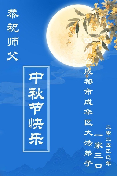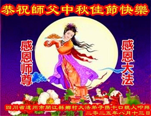 Практикующие Фалунь Дафа из провинции Сычуань желают уважаемому Учителю Ли Хунчжи счастливого праздника Середины осени (85 поздравлений)