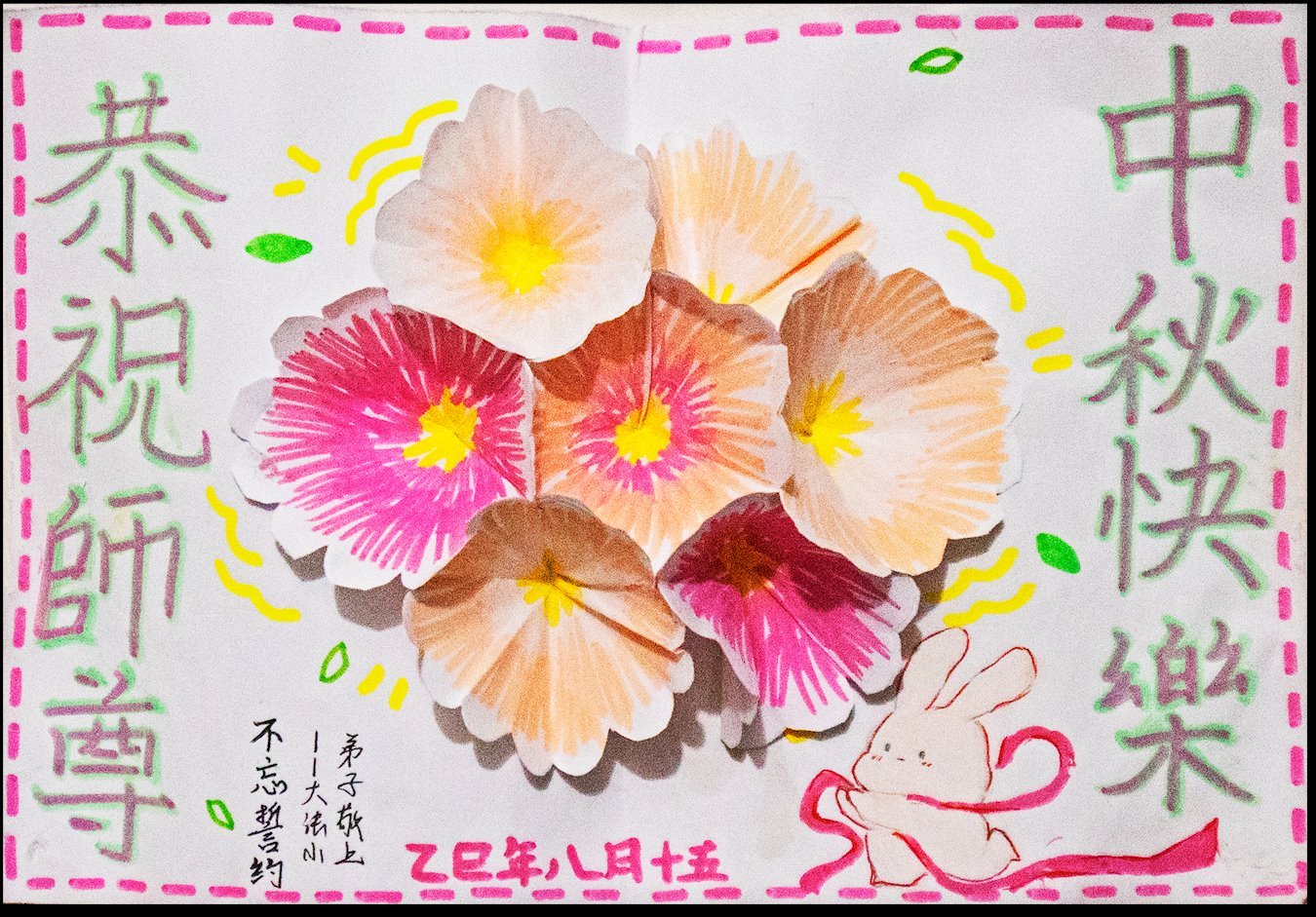 (Minghui.org) После того как в 1992 году Учитель Ли Хунчжи представил миру Фалунь Дафа, люди из самых разных слоёв общества начали заниматься этой практикой. Многие дети также следуют примеру своих родителей и практикуют Дафа. Руководствуясь принципами «Истина, Доброта, Терпение», они обретают мудрость и учатся быть добрыми и честными людьми. По случаю праздника Середины осени 2025 года многие из этих юных практикующих направили свои искренние поздравления Учителю Ли и пожелали основателю Фалуньгун счастливого праздника.