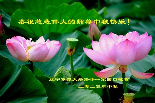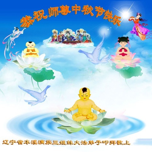 Практикующие Фалунь Дафа из городов Фушунь, Даньдун и Телин в провинции Ляонин желают уважаемому Учителю счастливого праздника Середины осени!