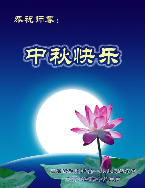 Практикующие Фалунь Дафа из провинции Ляонин желают уважаемому Учителю Ли Хунчжи счастливого праздника Середины осени (100 поздравлений)