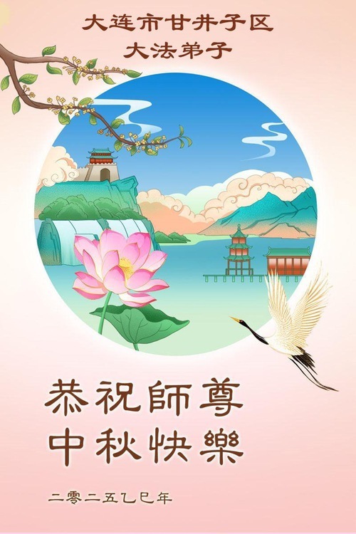 Практикующие Фалунь Дафа из города Даляня в провинции Ляонин желают уважаемому Учителю счастливого праздника Середины осени!