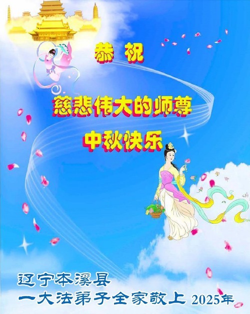 Практикующие Фалунь Дафа из города Бэньси в провинции Ляонин желают уважаемому Учителю счастливого праздника Середины осени!