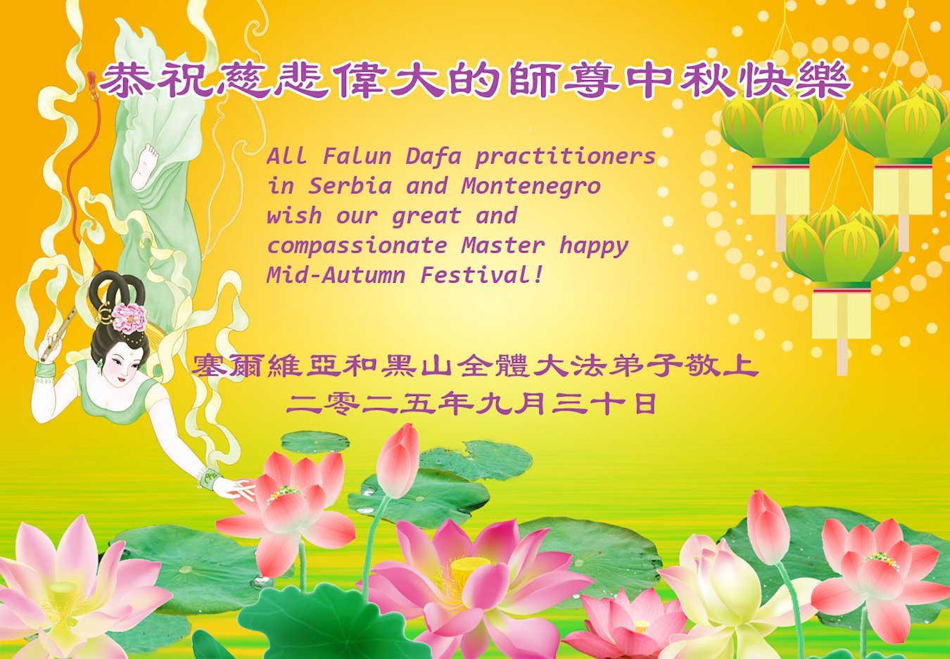 Все практикующие Фалунь Дафа из Сербии и Черногории поздравляют Учителя с праздником Середины осени!