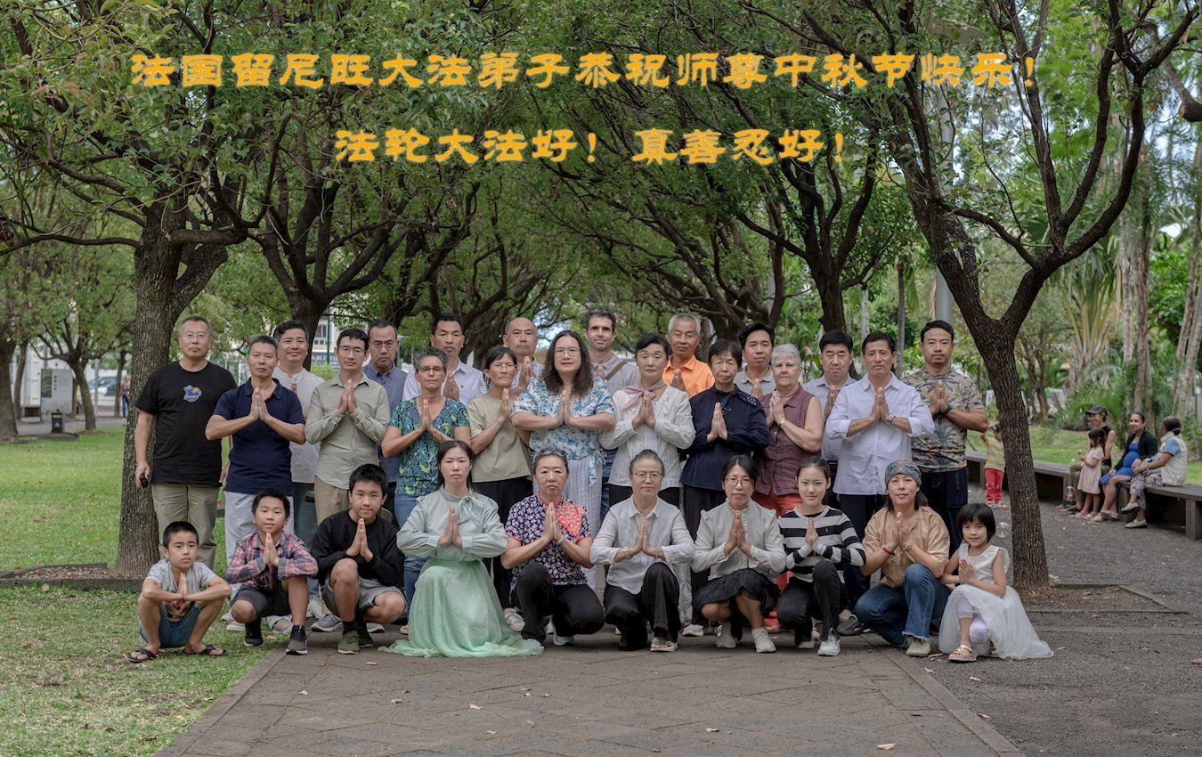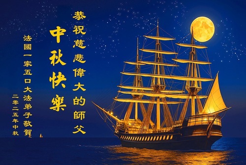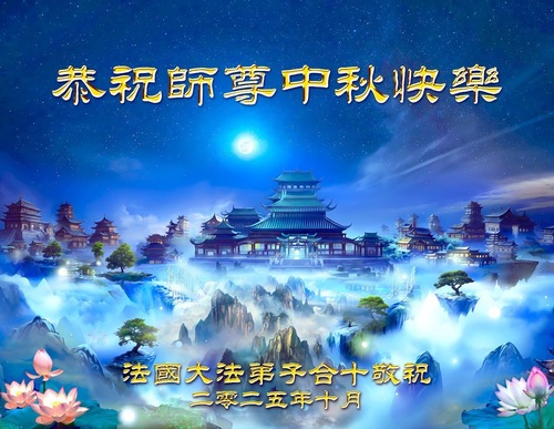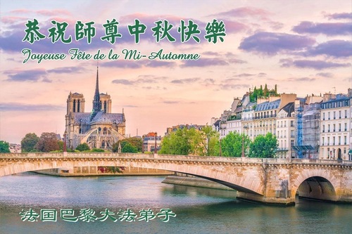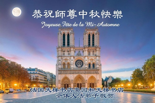 Практикующие Фалунь Дафа, работающие в книжном магазине Тяньти во Франции, поздравляют Учителя с праздником Середины осени!