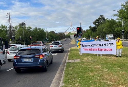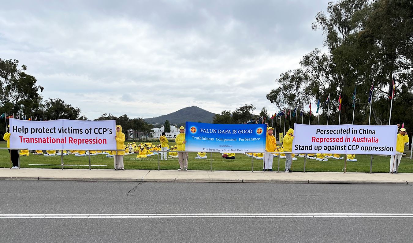 (Minghui.org) 28 октября 2025 года практикующие Фалуньгун из разных частей Австралии собрались в столице страны Канберре перед зданием парламента для проведения общественного митинга. Это было одно из серии мероприятий, проводимых в Канберре в течение четырёх дней, начиная с понедельника, 27 октября, с целью разоблачения преступлений компартии Китая, связанных с насильственным извлечением органов, и эскалацией транснациональных репрессий, направленных против австралийских правительственных организаций, членов федерального парламента и общественности.