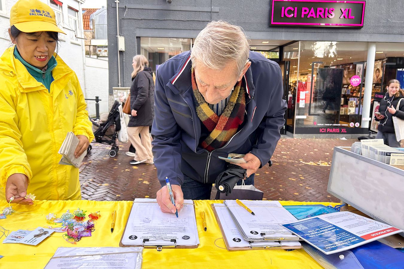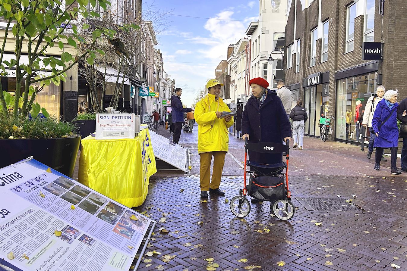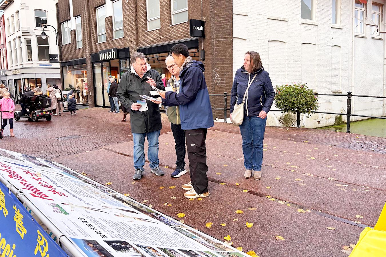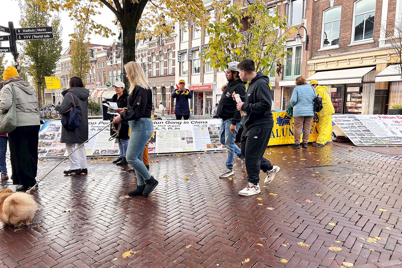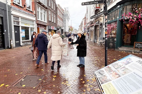 (Minghui.org) 1 ноября 2025 года в городе Гауда в Нидерландах прошёл информационный день Фалунь Дафа. Практикующие установили информационные стенды на улице Турфмаркт в центре города и продемонстрировали упражнения. Они раздавали листовки и рассказывали людям о преследовании, которое ведёт компартия Китая против этой духовной практики. Многие туристы узнали о Фалунь Дафа и подписали петицию с призывом прекратить преследование.