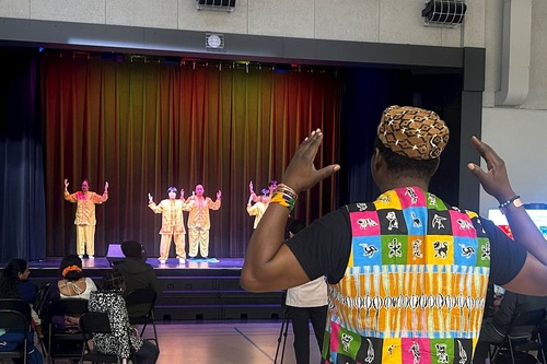 Музыкант и исполнитель на ударных инструментах Вандара Топзо из Центральной Африки, постоянный участник общественных мероприятий, с увлечением наблюдал за демонстрацией упражнений и повторял движения за практикующими.
