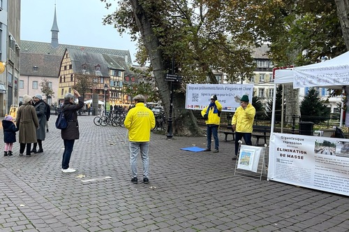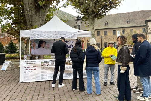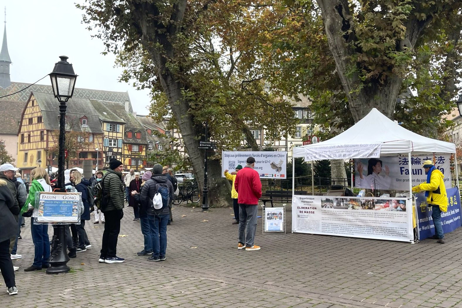 Практикующие из Восточной Франции провели мероприятия в центре города Кольмара 8 ноября 2025 года. Местные жители и туристы узнали о Фалунь Дафа и подписали петицию с призывом остановить насильственное извлечение органов, санкционированное КПК.