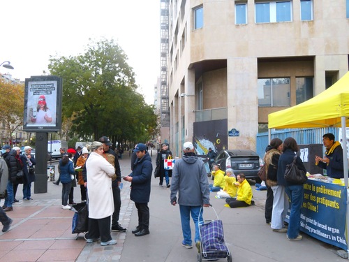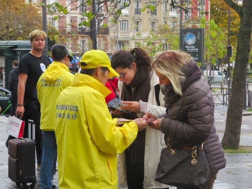 11 ноября во Франции отмечался государственный праздник, официально объявленный Днём памяти. Практикующие Фалунь Дафа собрались в Бельвилле, чтобы продемонстрировать упражнения, познакомить людей с этой духовной практикой и рассказать о преследовании в Китае. Многие прохожие подписали петицию с призывом прекратить преследование. Во время мероприятия несколько китайцев отказались от членства в КПК и принадлежащих ей организаций.