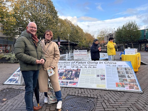 Местные жители Майкл и его жена Сьюзан остановились у стенда Фалунь Дафа в Оссе и рассказали практикующим, что они узнали о Фалунь Дафа в социальных сетях и уже подписали онлайн-петицию с призывом прекратить преследование. «Мы считаем, что каждый человек, каждая культура и вера должны быть свободны от репрессий правительства или других групп», – сказал Майкл. Супруги были опечалены, когда узнали о зверствах КПК, связанных с извлечением органов у живых последователей Фалуньгун, и пожелали практикующим успехов в их усилиях по информированию общественности о преследовании.