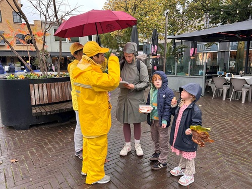 25 октября 2025 года практикующие установили стенды с информацией и продемонстрировали упражнения Фалунь Дафа на улице Хевел в Оссе, городе в провинции Северный Брабант. Несмотря на дождь, многие люди останавливались, чтобы поговорить с практикующими и узнать о Фалунь Дафа.