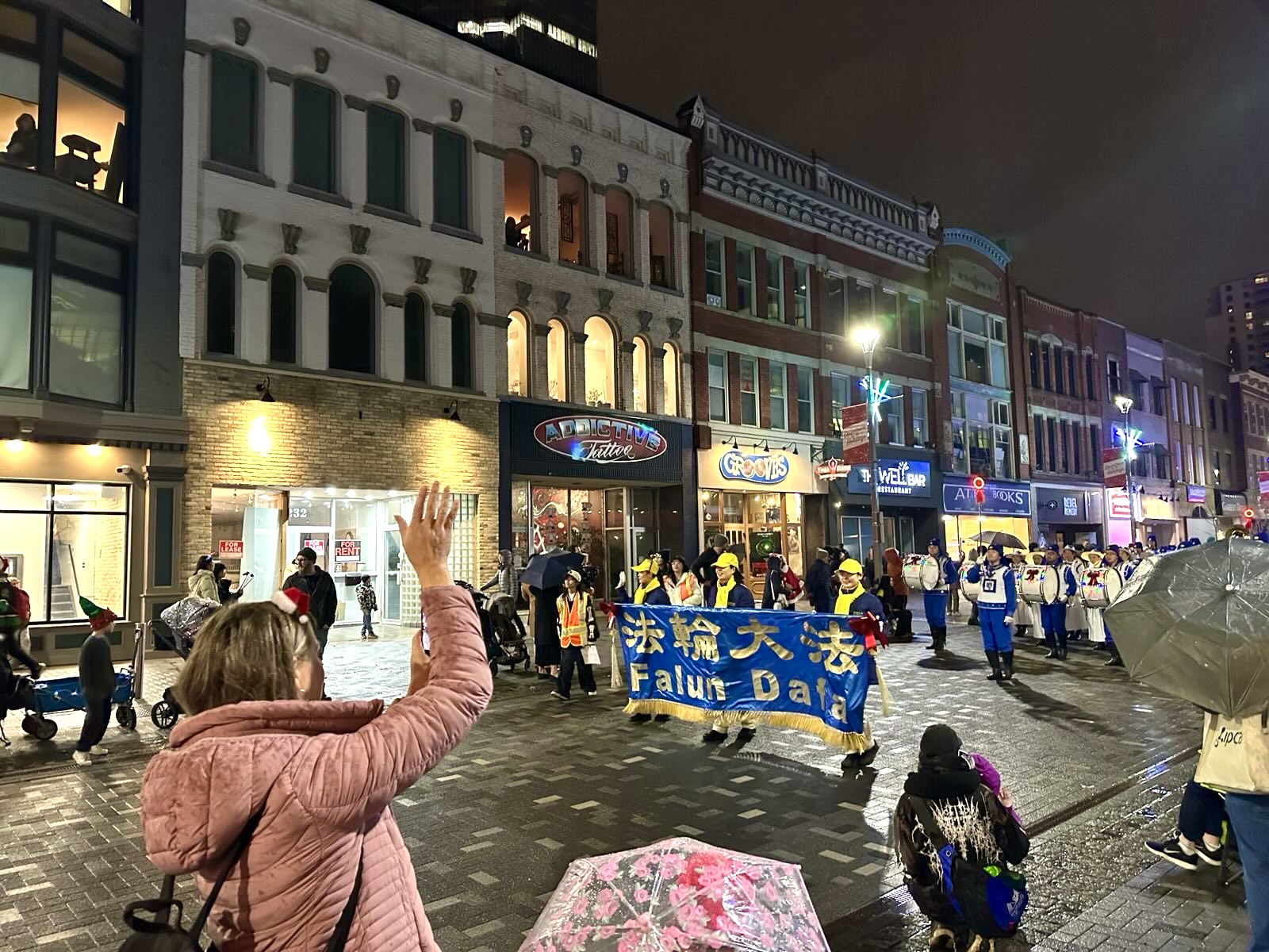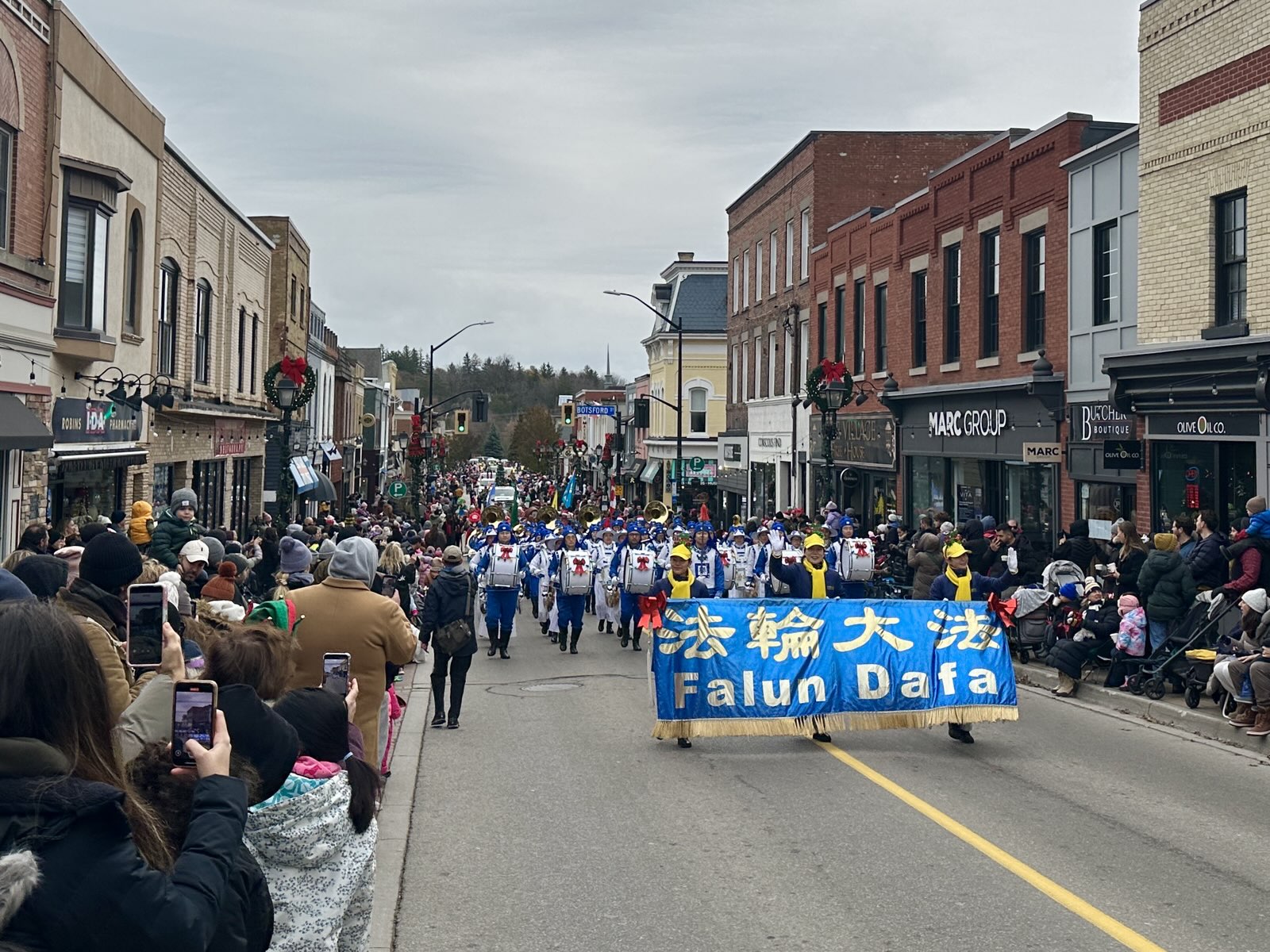 (Minghui.org) Хотя до Рождества остаётся больше месяца, праздничные мероприятия уже начались в провинции Онтарио (Канада), где ежегодно проводится несколько парадов. Духовой оркестр Тянь Го был приглашён для участия в пяти из них. Оркестр выступил на параде в Ньюмаркете в 11 часов утра 15 ноября 2025 года, а также в Гамильтоне и Лондоне во второй половине дня и вечером. В 13:30 часов 16 ноября музыканты выступили в Милтоне, после чего отправились в Ньюкасл, чтобы присоединиться к праздничному шествию в 17:30.