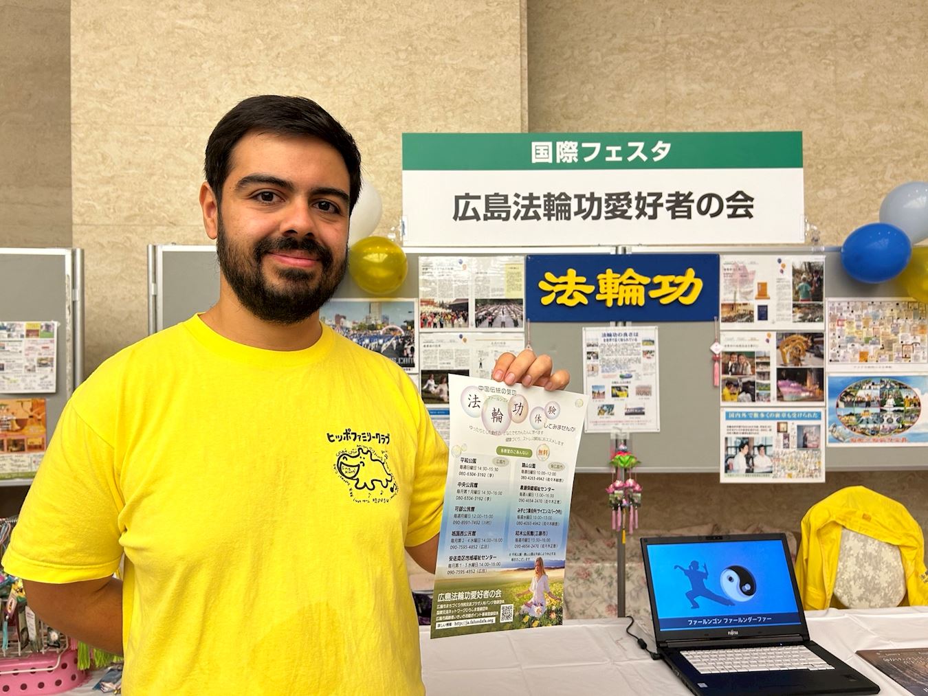 Йошида поддержал выступление практикующих Фалуньгун, воскликнув на китайском языке: «Это потрясающе»