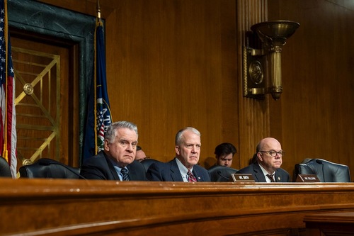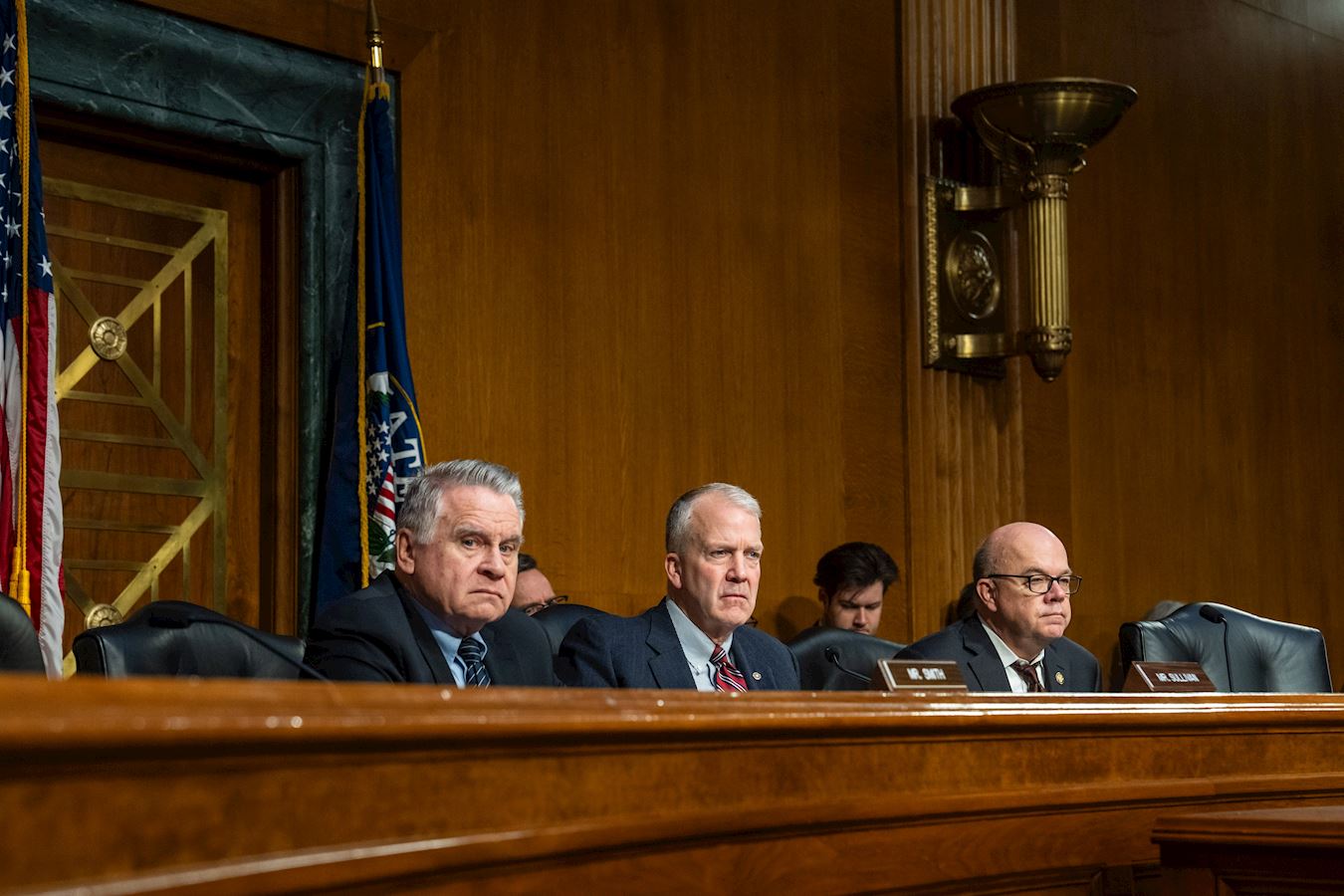 Сенатор Дэн Салливан (в центре) ведёт слушания под названием «Война Китая с религией, угроза религиозной свободе и почему это важно для Соединённых Штатов», 20 ноября 2025 года