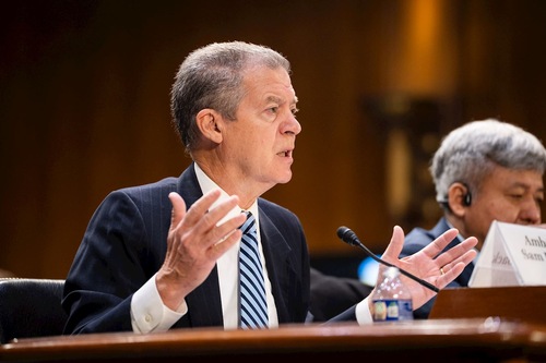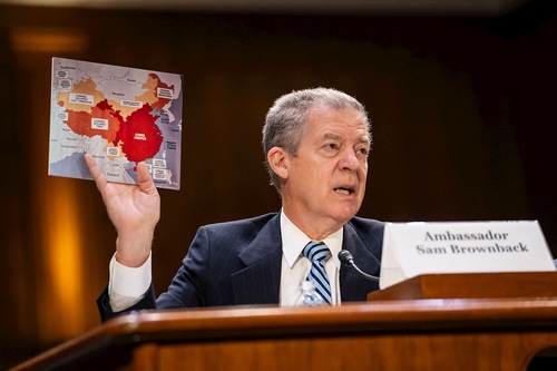 Посол Сэм Браунбэк выступает на слушаниях в Конгрессе по вопросу о свободе вероисповедания в Китае