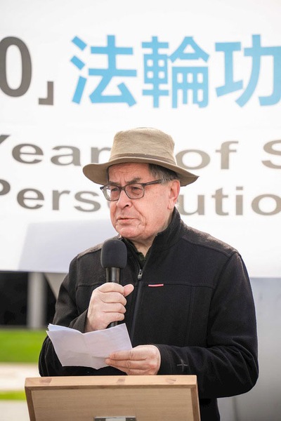 Энтони Брант, бывший депутат городского совета Веллингтона, выступил на митинге, организованном практикующими Фалунь Дафа