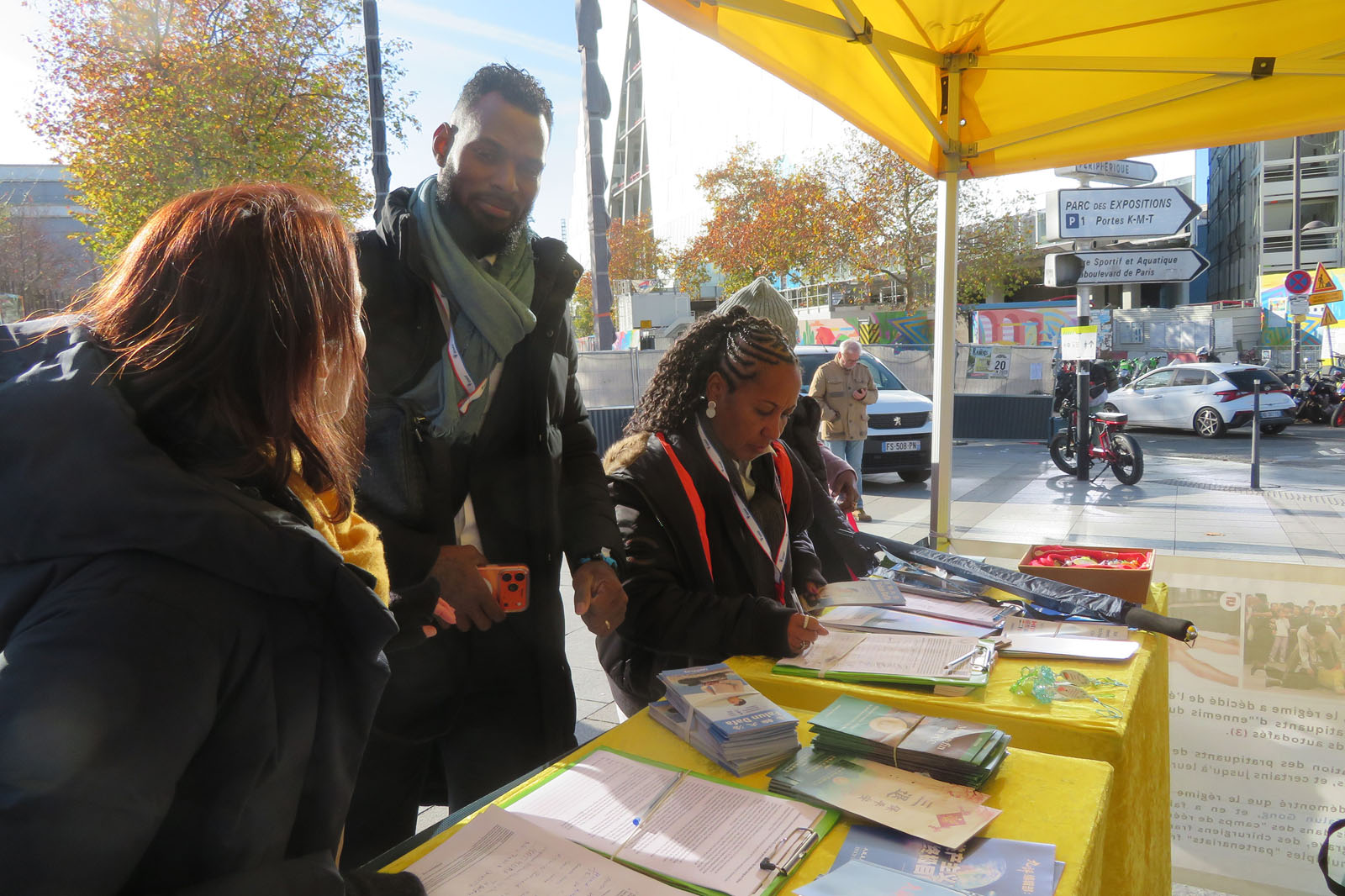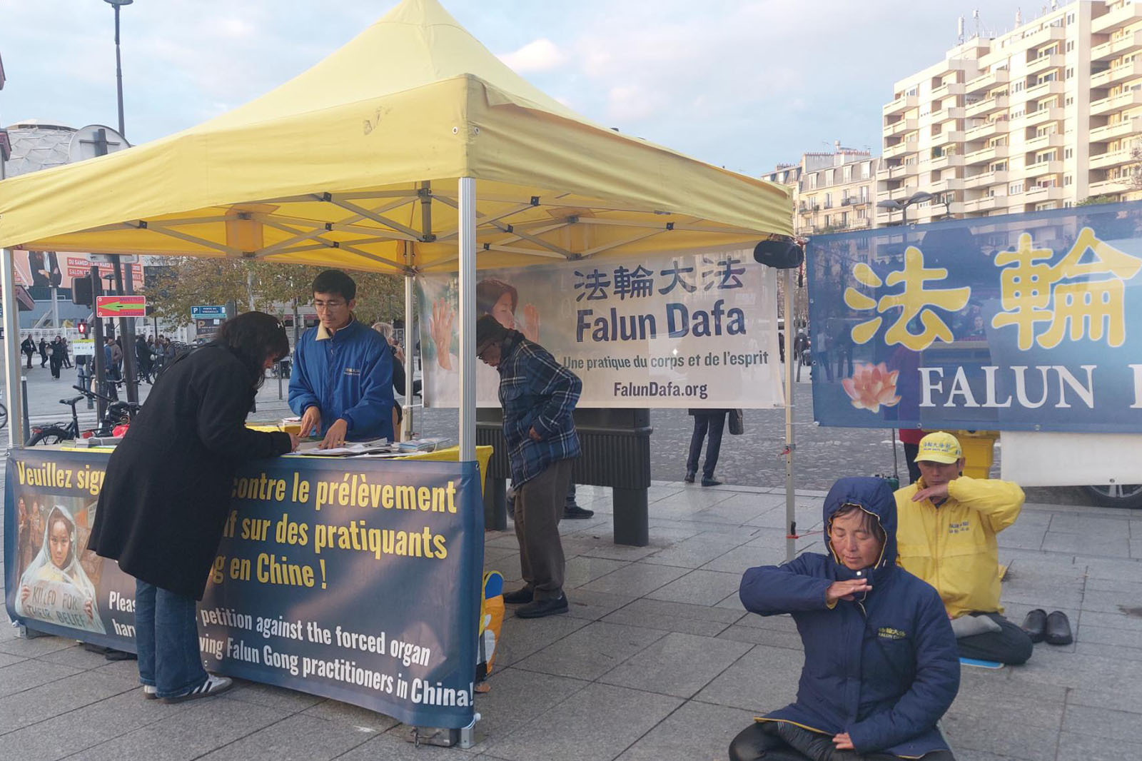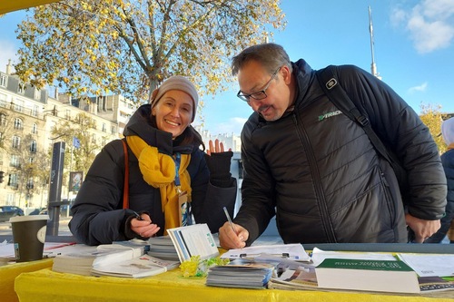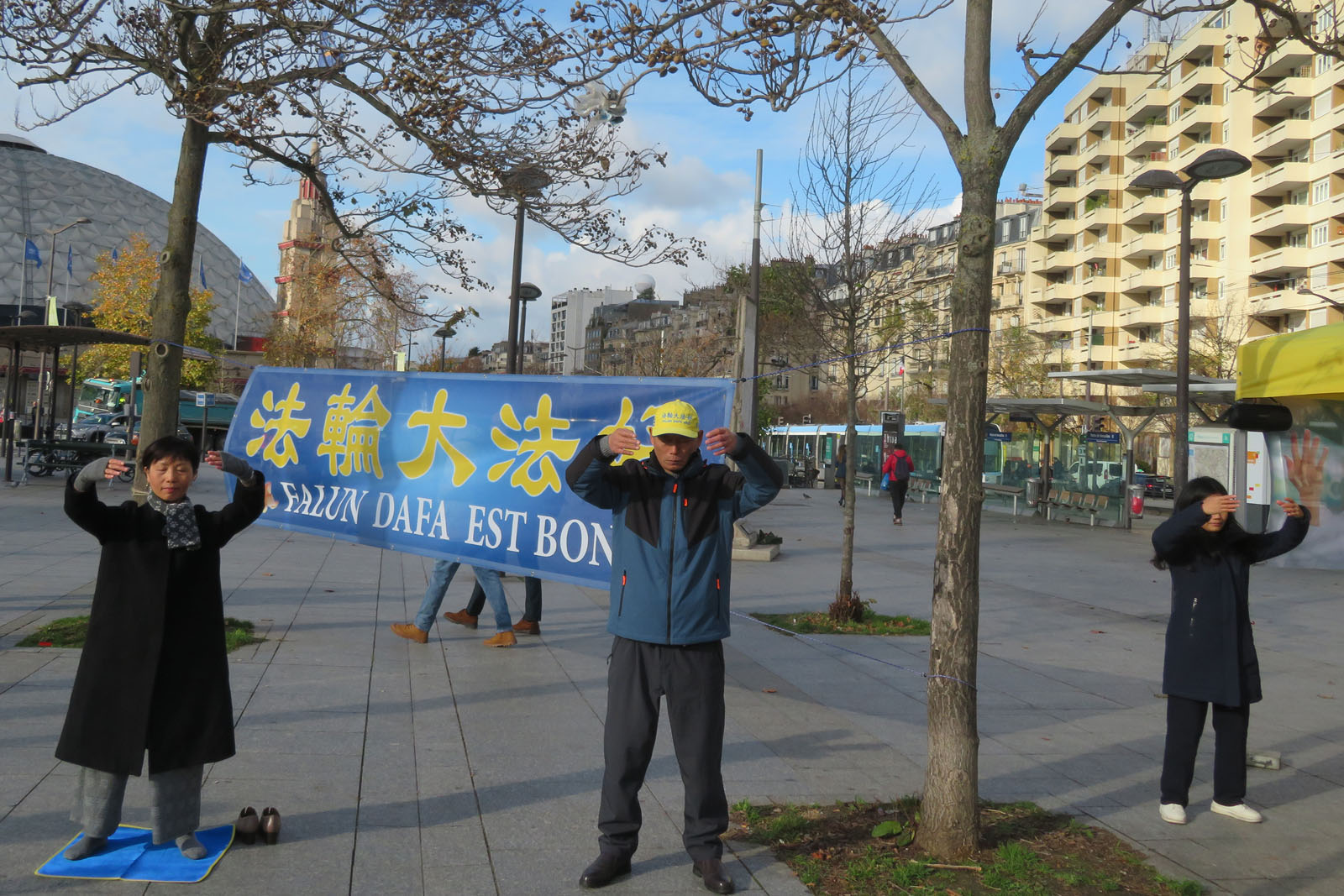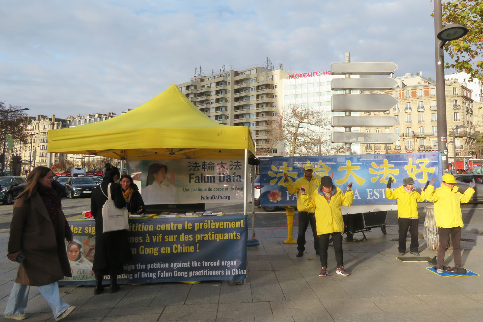 (Minghui.org) Ежегодная выставка с учакстием мэров и глав местных органов власти проходила в выставочном центре Порт-де-Версаль (Paris Expo Porte de Versailles) в Париже с 18 по 20 ноября 2025 года. Практикующие Фалунь Дафа (или Фалуньгун) воспользовались этой возможностью, чтобы привлечь внимание общественности к преследованию этой практики компартией Китая. 18 и 19 ноября они провели перед выставочным центром мероприятие, во время которого демонстрировали упражнения и собирали подписи под петицией с призывом к прекращению преследования в Китае.