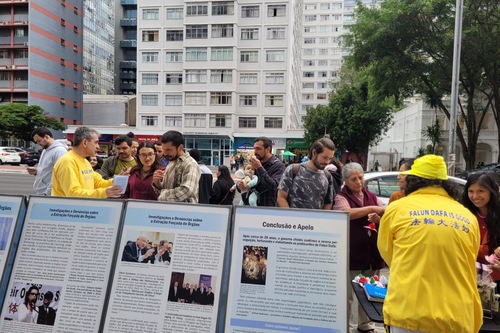 Проспект Паулиста, простирающийся с северо-запада на юго-восток города, является экономическим и политическим центром Сан-Паулу. Демонстрация упражнений практикующими, информационные стенды, цветы лотоса, выполненные в технике оригами, и сбор подписей привлекли многих прохожих, которые подписали петицию с призывом положить конец зверствам КПК.