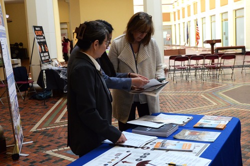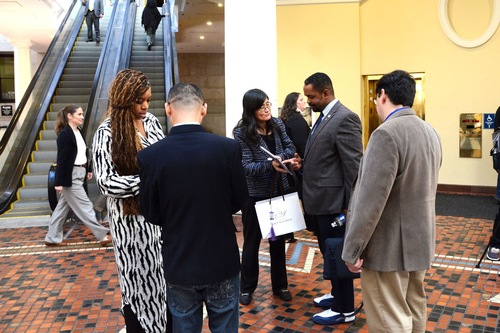Практикующие беседуют с сотрудниками законодательного органа на мероприятии в здании капитолия штата Пенсильвания в Харрисбурге