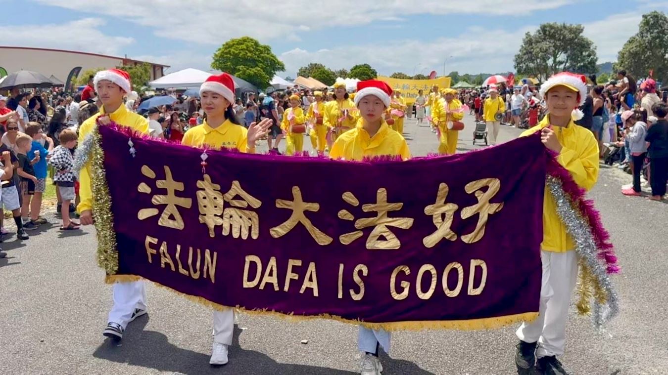 (Minghui.org) В конце ноября во многих городах Новой Зеландии проходят Рождественские парады. В этом году практикующих Фалунь Дафа пригласили более чем в 20 городов и районов для участия в ежегодных праздничных шествиях. 22 и 23 ноября 2025 года в парадах, состоявшихся в Крайстчерче и пригородах Окленда Онихунге и Папакуре приняли участие духовой оркестр Тянь Го, исполнители танца дракона и команда барабанщиков с поясными барабанами.