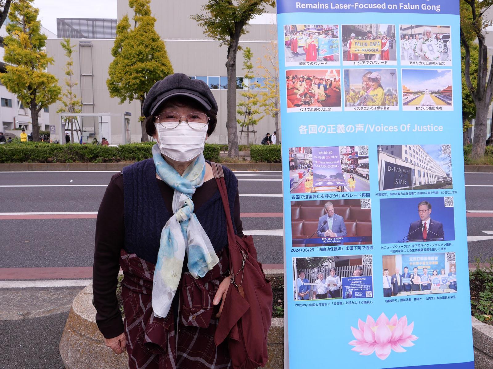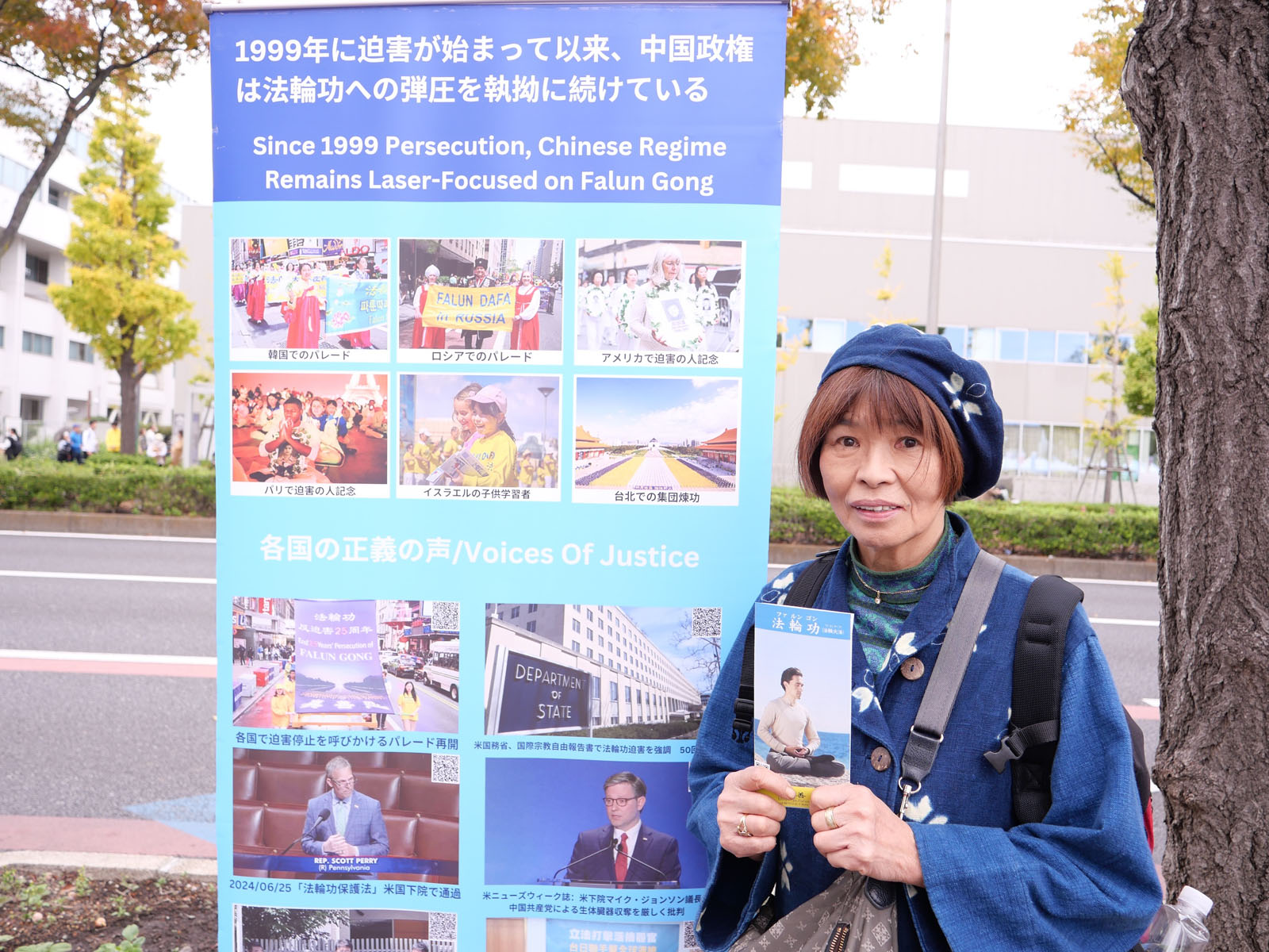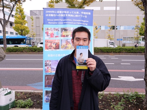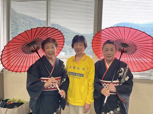 После разговора с практикующими и знакомства с Фалуньгун Ясуда, руководитель группы «Красота кимоно», сказала, что полностью согласна с принципами «Истина, Доброта, Терпение». Она решила в свой выходной день пойти в учебный класс в общественном центре Кобе, чтобы выучить упражнения Фалуньгун и обменяться контактной информацией с практикующими.