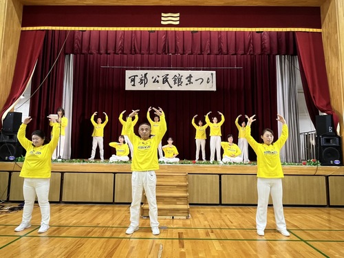 2 ноября 2025 года практикующие Фалуньгун приняли участие в 52-м фестивале общественного центра Кобе в Хиросиме. Они представили Фалуньгун на сцене и продемонстрировали пять комплексов упражнений. Почти все зрители повторяли за ними движения упражнений, создавая удивительно спокойную атмосферу. После мероприятия многие люди спрашивали у практикующих адреса местных пунктов практики, а некоторые предлагали им свою помощь.