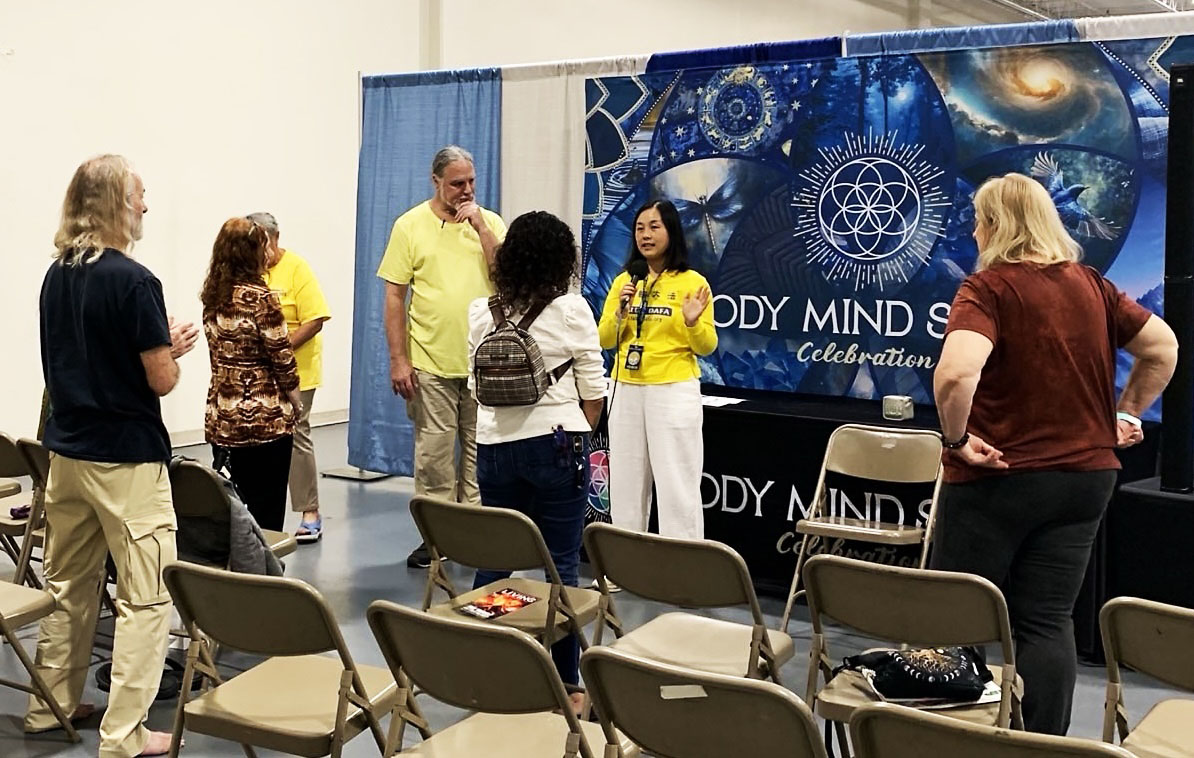 (Minghui.org) Практикующие Фалунь Дафа из Центральной Флориды приняли участие в двухдневной выставке «Тело, разум, дух», которая проходила 15 и 16 ноября 2025 года на выставочной площадке в Тампе в штате Флорида.
