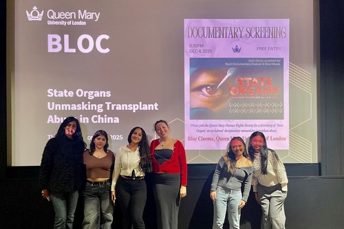(Minghui.org) Документальный фильм «Государственные органы», разоблачающий чудовищные преступления компартии Китая, связанные с насильственным извлечением органов у живых последователей Фалунь Дафа, был показан 4 декабря 2025 года в Университете королевы Марии в Лондоне. Многие студенты признались, что были потрясены и обеспокоены информацией о столь вопиющих нарушениях прав человека. Некоторые проявили интерес к Фалунь Дафа (Фалуньгун) и спросили, где можно найти местные пункты практики.