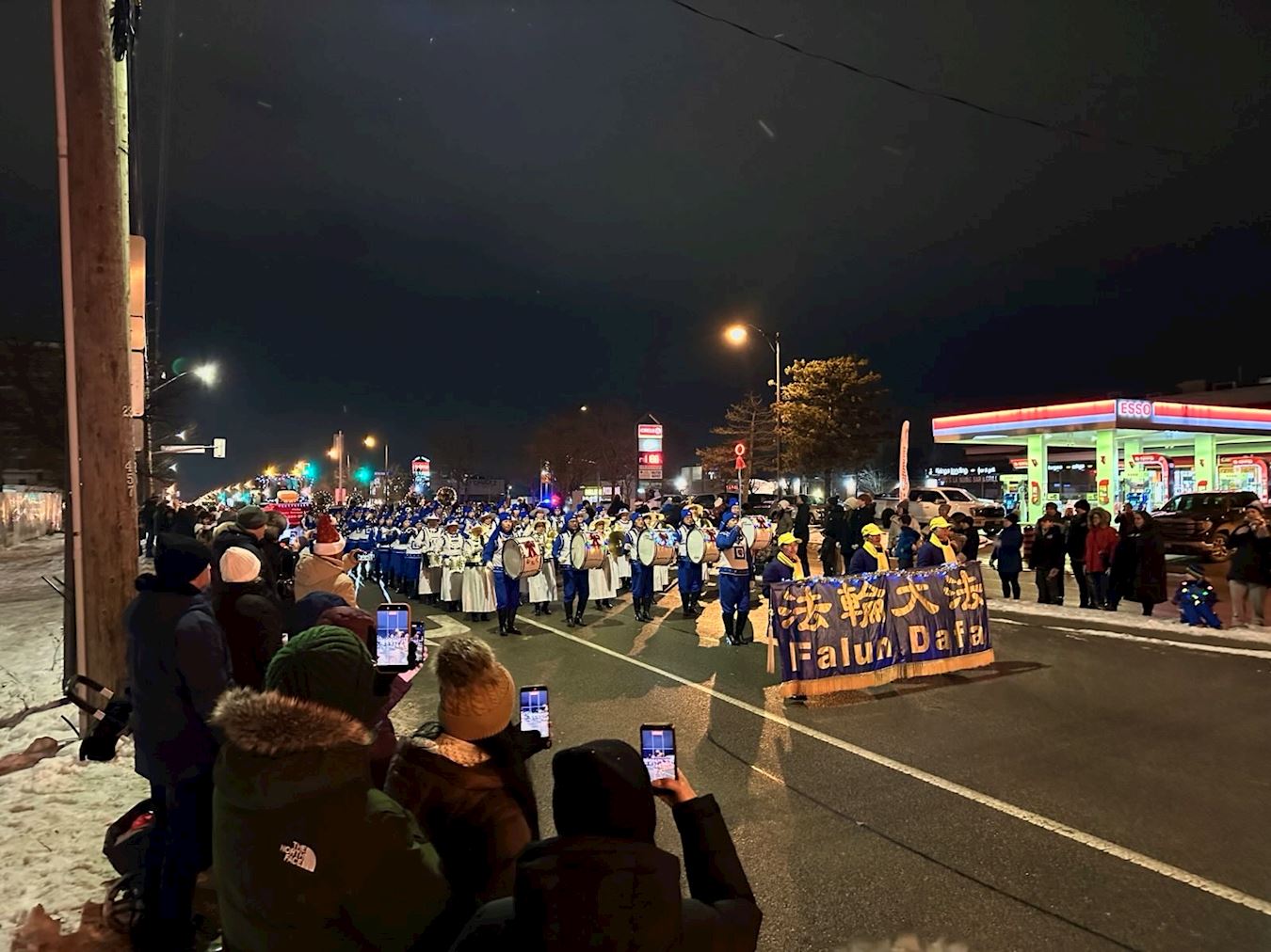 Марширующий оркестр Тянь Го принимает участие в параде Санта Клауса в Стоуфвиле 6 декабря 2025 года в шесть часов вечера