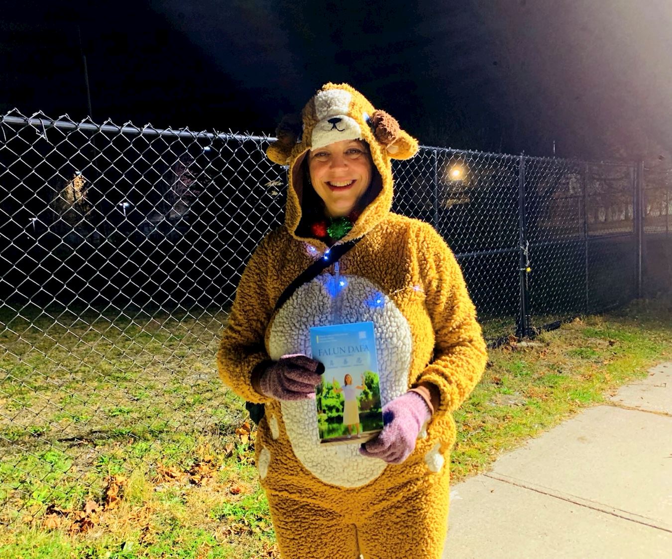 Практикующий дал супругам буклет. Дженнифер, посмотрев на него, сказала: «Я раньше этого не знала. Истина, Доброта, Терпение – это замечательно. Практика Фалунь Дафа может помочь людям быть здоровыми и обрести внутренний покой».