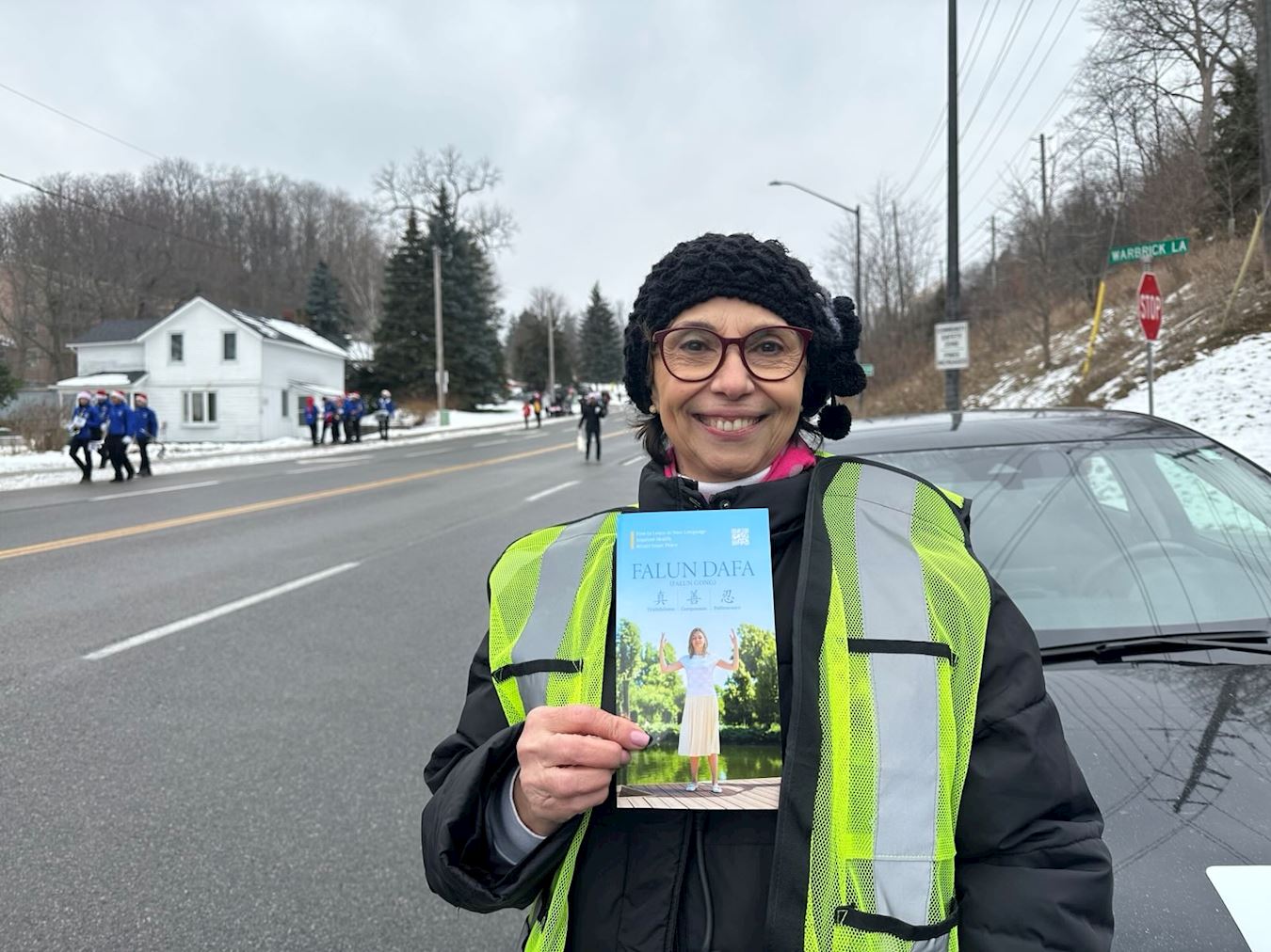 Кэрол, профессионал в сфере недвижимости из Эйджакса (провинция Онтарио), участвовала в параде в Эйджаксе со своей группой. Перед началом парада она увидела, как участники марширующего оркестра Тянь Го выполняли упражнения Фалунь Дафа. Она поговорила с одним из практикующих, который рассказал ей о принципах Фалунь Дафа «Истина, Доброта, Терпение», и попросила его показать ей упражнения.