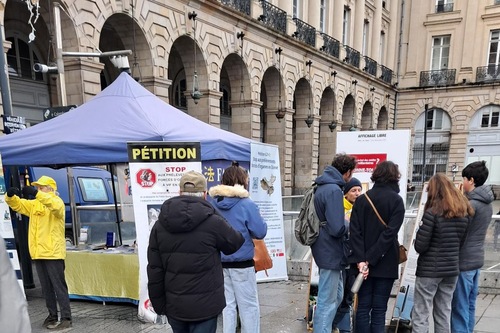 6 декабря 2025 года в городе Ренне, столице Бретани на северо-западе Франции, практикующие провели информационный день. Мероприятие привлекло множество прохожих, многие из которых фотографировали практикующих и плакаты.