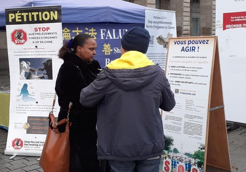Лоуренс, исследователь-биолог, проходила мимо, чтобы сесть на поезд домой после завершения стажировки в Страсбурге. Она сказала: «Я и представить не могла, что в мире существует такое варварство. Очень надеюсь, что люди обратят внимание на эту проблему и насильственное извлечение органов наконец прекратится».