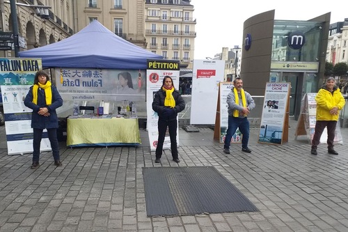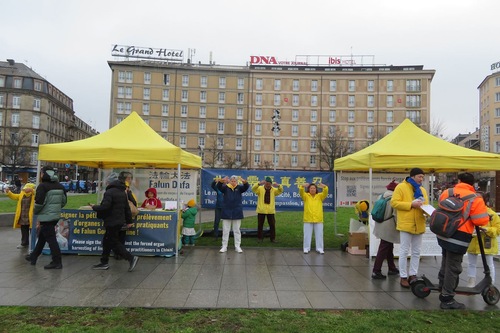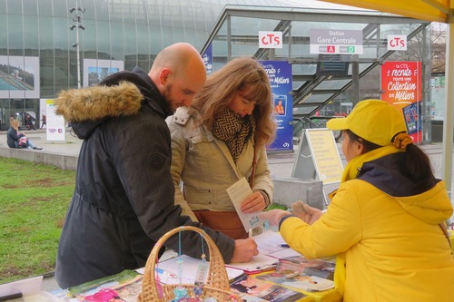 С 5 по 7 декабря последователи Фалунь Дафа знакомили прохожих с Фалунь Дафа на площади перед вокзалом Страсбурга. Многие люди подписали петицию с призывом положить конец преследованию в Китае