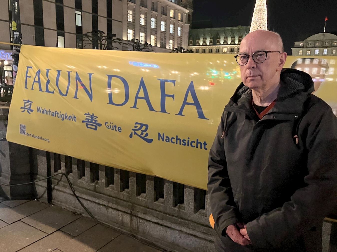 Практикующие Фалуньгун в Гамбурге проводят мирную акцию в память о погибших в результате преследования практикующих в Китае, 10 декабря 2025 года