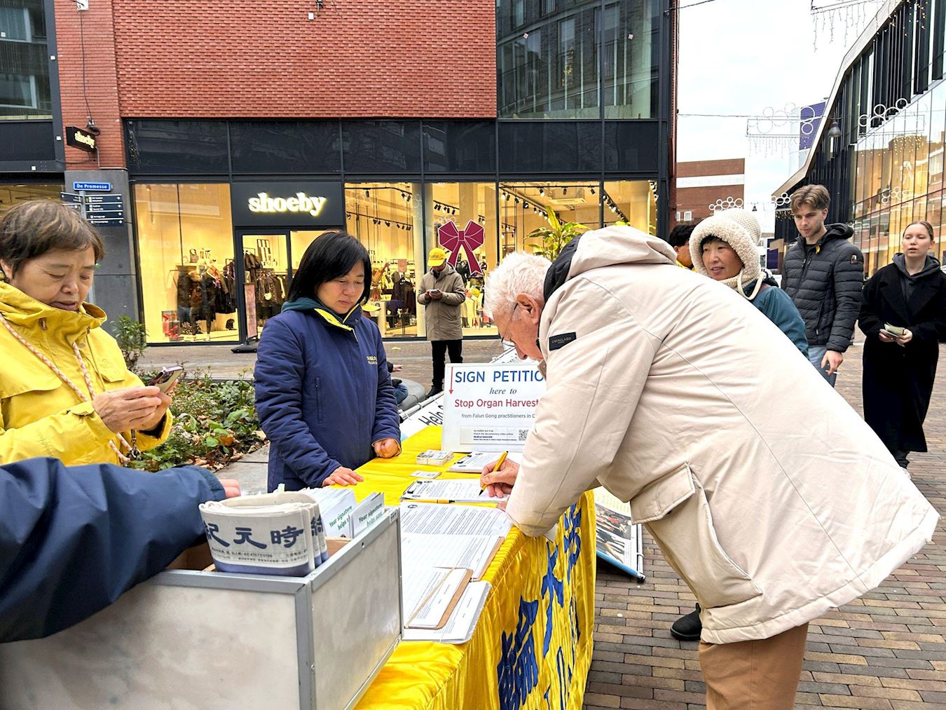 Жители подписывают петицию в поддержку усилий практикующих Фалунь Дафа по прекращению преследования на мероприятии, посвященном информационному дню в Лелистаде 29 ноября 2025 года