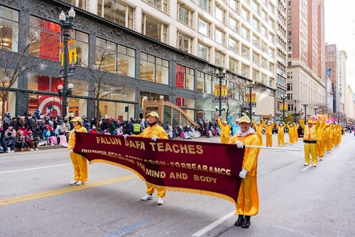 Практикующие Фалунь Дафа принимают участие в параде в честь Дня благодарения в Чикаго, 27 ноября 2025 года