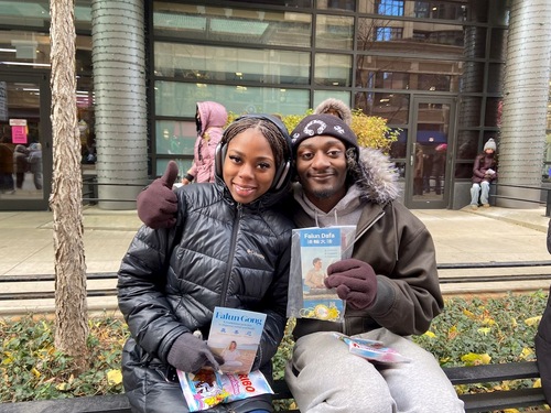 Жители Чикаго Гомес и его жена Габи сказали, что были рады узнать о Фалунь Дафа. Габи добавила: «Я хотела бы узнать больше об этой практике». Она была рада увидеть платформу Фалунь Дафа: «Она великолепна! Я рада видеть вас здесь».
