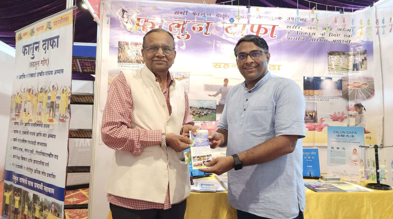 В первый день мероприятия к киоску практикующих подошёл Винаякрав Джадхав, бывший помощник комиссара полиции, который проявил большой интерес к Фалунь Дафа. «Это очень хорошая практика, – сказал он. – Я хотел бы прочитать обе эти Книги, и нам также нужно познакомить с ней моих коллег-полицейских, вышедших в отставку. Вы делаете очень хорошую работу».