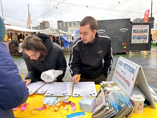 (Minghui.org) 6 декабря 2025 года в Амстердаме голландская передвижная группа разъяснения правды провела информационный день. Многие люди узнали о Фалуньгун и подписали петицию. Один мужчина сказал: «Нидерланды должны знать об этом. Я поддерживаю вас!»