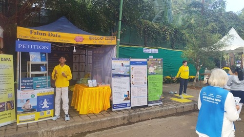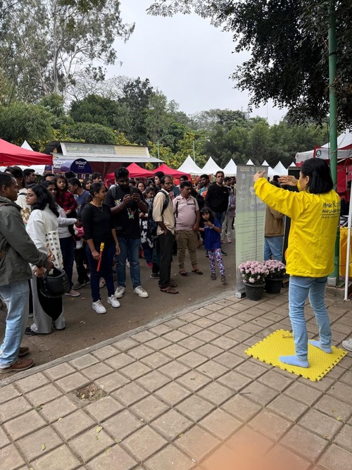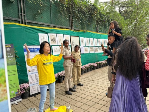 (Minghui.org) Департамент садоводства штата Карнатака провёл 11-дневную выставку цветов в парке Куббон в Бангалоре с 27 ноября по 7 декабря 2025 года. Она была организована по образцу знаменитой ежегодной выставки цветов в Лалбаге. Практикующих Фалунь Дафа пригласили на это мероприятие, чтобы они рассказали посетителям об этой системе самосовершенствования.