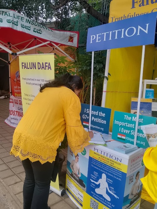 Практикующие также использовали стенд, чтобы информировать о преследовании, которому подвергаются последователи Фалунь Дафа в Китае, и о санкционированном государством насильственном извлечении органов, осуществляемом компартией Китая. Они призывали посетителей подписать петицию, чтобы помочь остановить это зверство.
