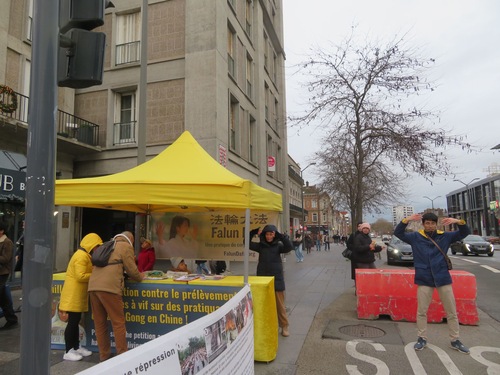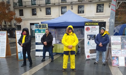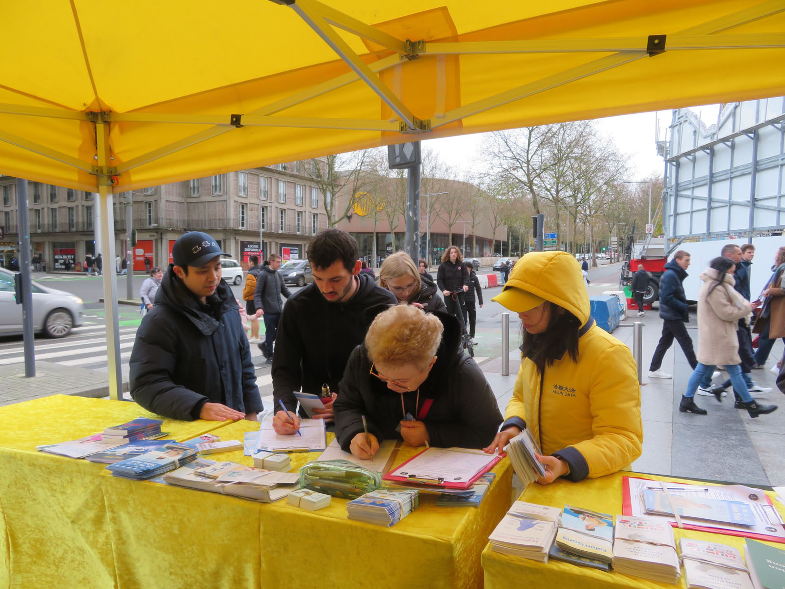 29 ноября 2025 года практикующие установили палатку на площади Эклюза в Нанте. Несмотря на ненастную погоду, многие люди останавливались, разговаривали с практикующими и подписывали петицию с призывом прекратить преследование, осуществляемое компартией Китая.