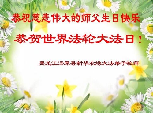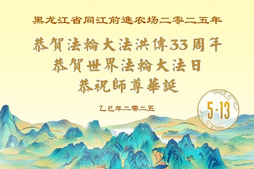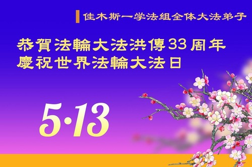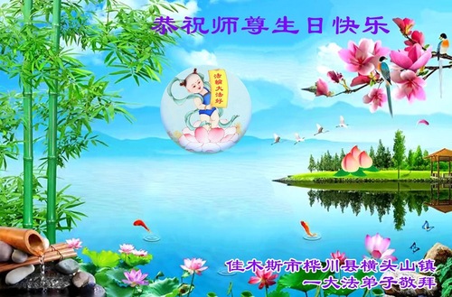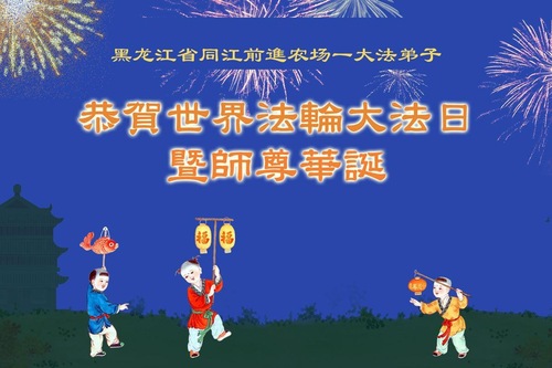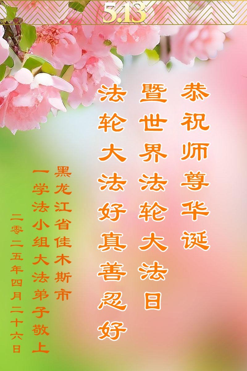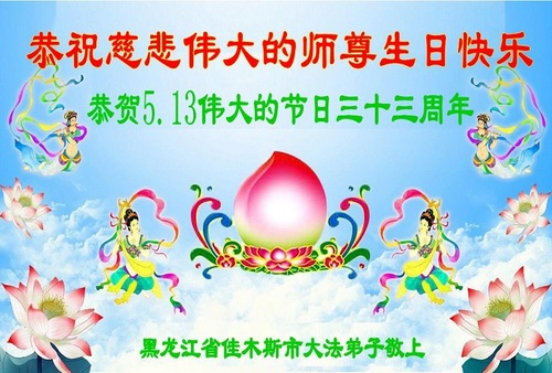 Практикующие Фалунь Дафа из города Цзямусы желают уважаемому Учителю счастливого Дня рождения и празднуют Всемирный День Фалунь Дафа!
