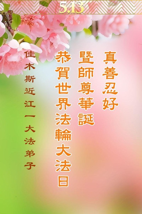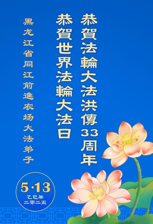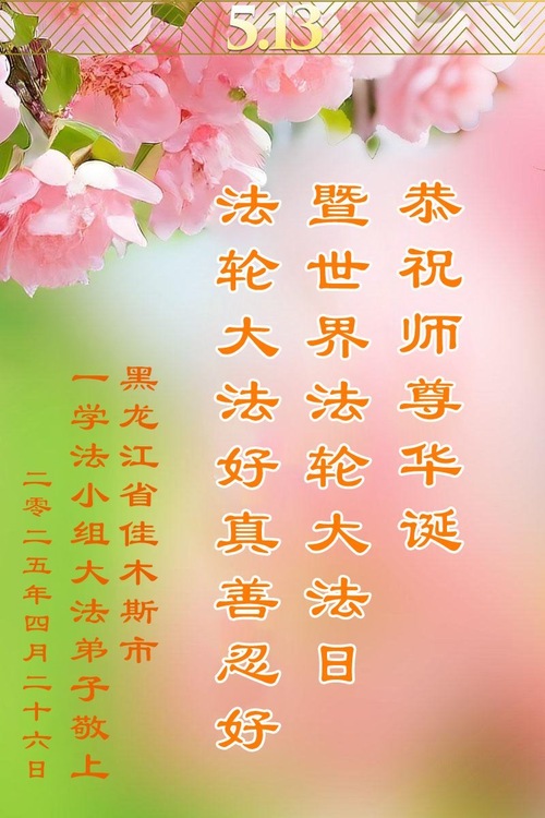 (Minghui.org) 13 мая 2025 года отмечается 26-й Всемирный День Фалунь Дафа и 33-я годовщина публичного представления Фалунь Дафа. Этот день также является Днём рождения Мастера Ли, основателя Фалунь Дафа. Практикующие по всему миру шлют свои сердечные поздравления, чтобы отпраздновать это важное событие и поблагодарить уважаемого Учителя в этот особенный день.