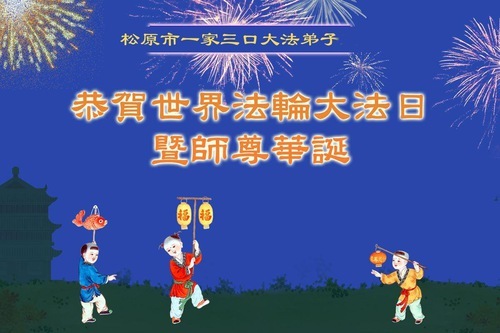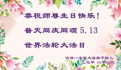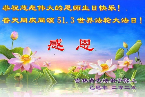 Практикующие Фалунь Дафа из провинции Цзилинь желают уважаемому Учителю счастливого Дня рождения и празднуют Всемирный День Фалунь Дафа!