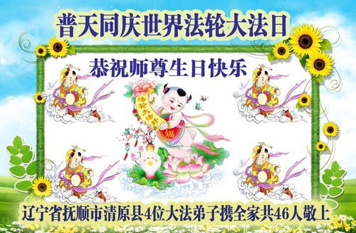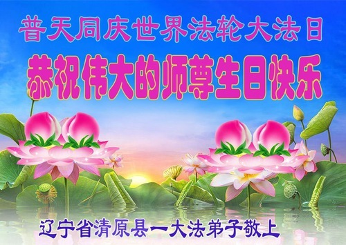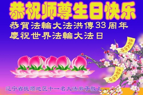 Практикующие Фалунь Дафа из провинции Ляонин желают уважаемому Учителю счастливого Дня рождения и празднуют Всемирный День Фалунь Дафа!