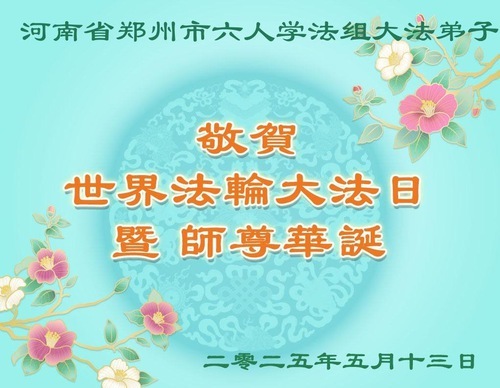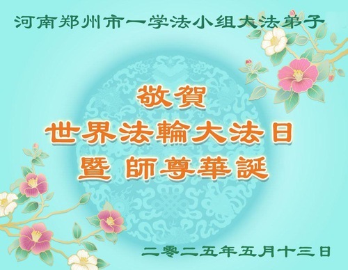 Практикующие Фалунь Дафа из города Чжэнчжоу желают уважаемому Учителю счастливого Дня рождения и празднуют Всемирный День Фалунь Дафа!