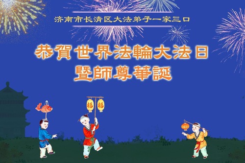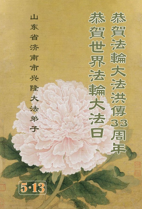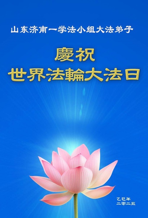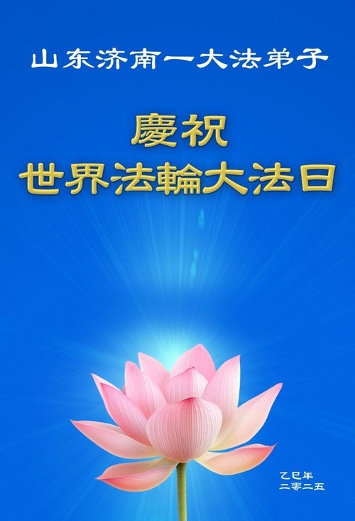 Практикующие Фалунь Дафа из Цзинаня желают уважаемому Учителю счастливого Дня рождения и празднуют Всемирный День Фалунь Дафа!