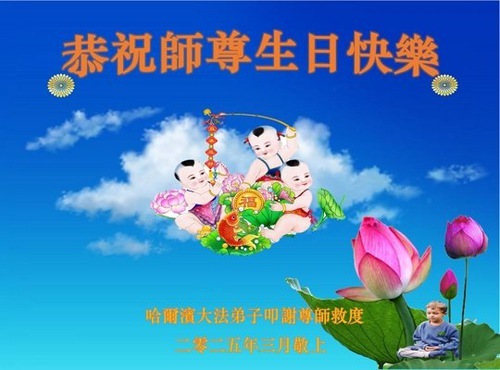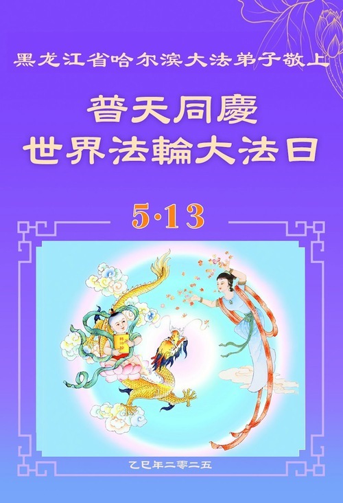 Практикующие Фалунь Дафа из города Харбина желают уважаемому Учителю счастливого Дня рождения и празднуют Всемирный День Фалунь Дафа!